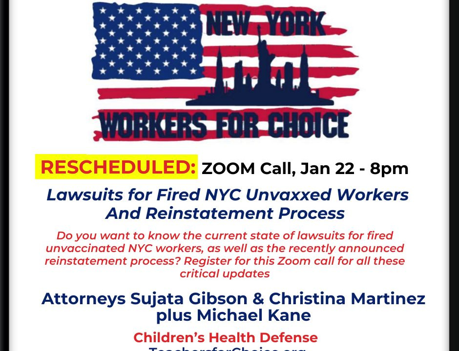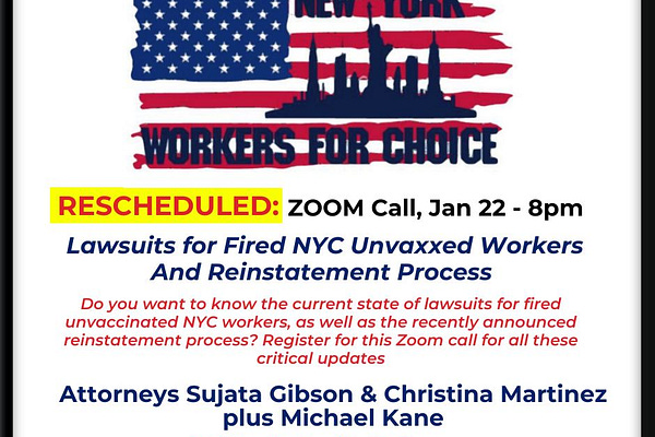 RESCHEDULED --- NYC Fired Unvaccinated Worker Zoom Call Jan 22, 8pm