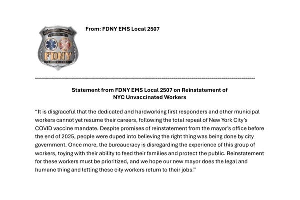 Contact your union today and tell them to ensure the NYC Mayor gets the rule change allowing fired unvaccinated workers to return to work in front of…